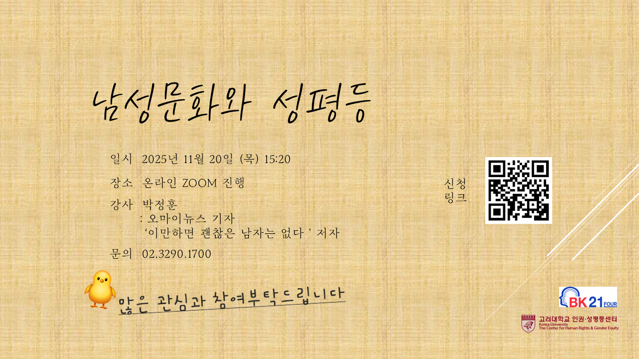 [남성문화와 성평등]이라는 주제로 온라인 세미나를 개최하고자 합니다.